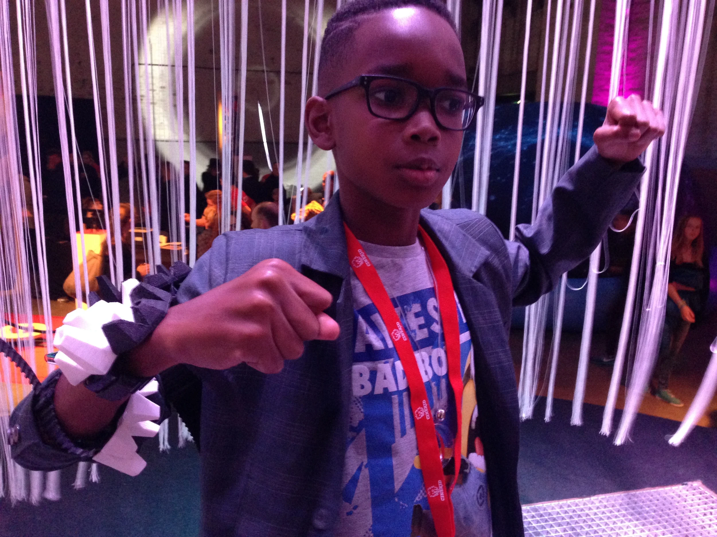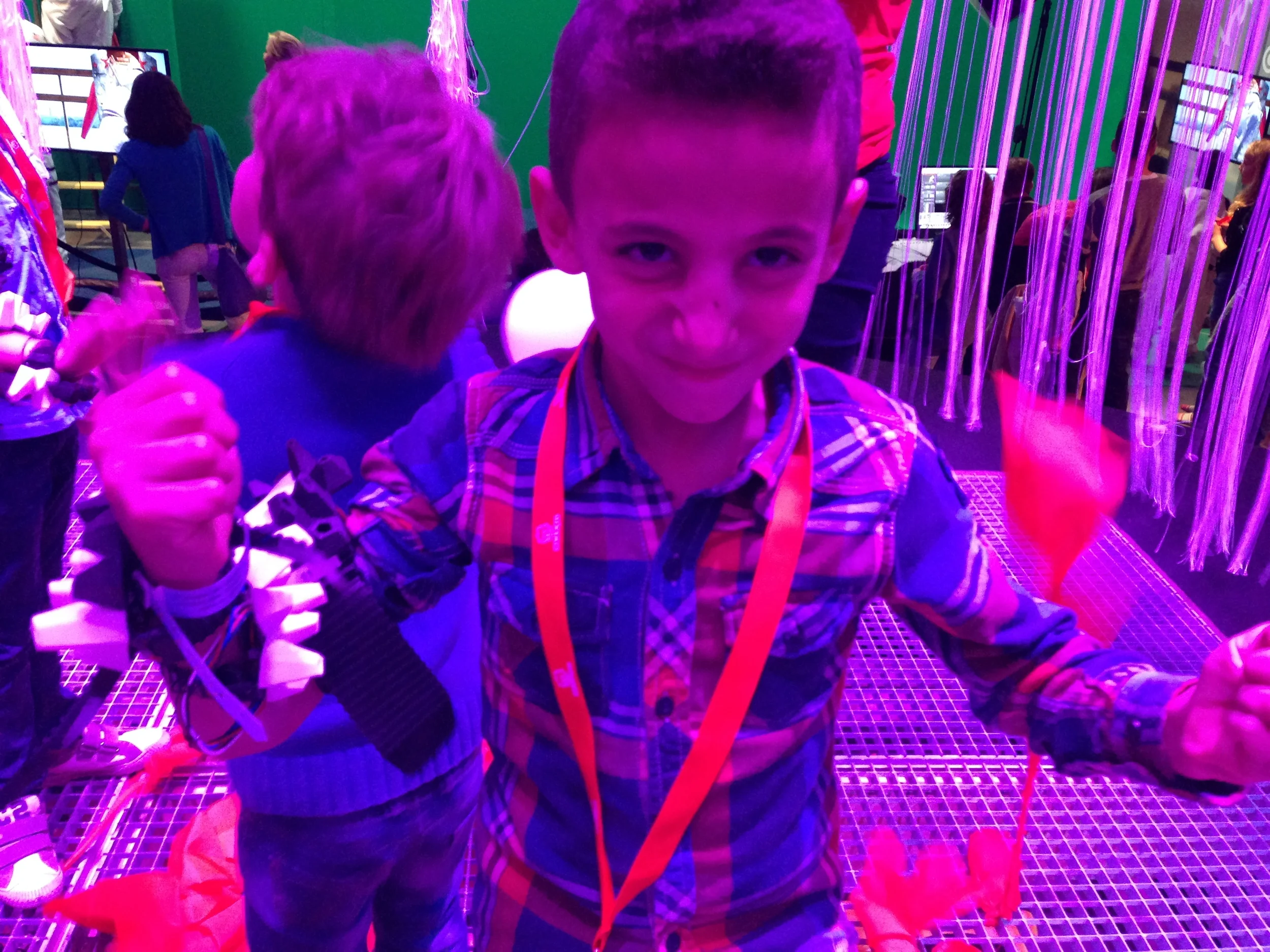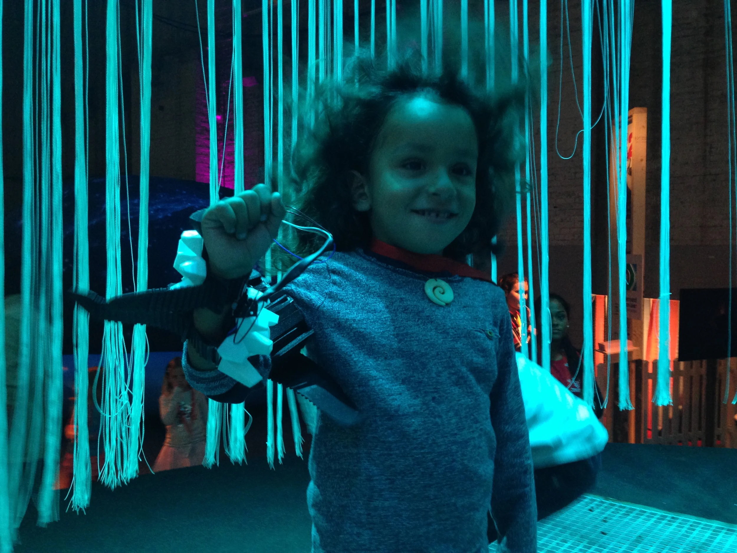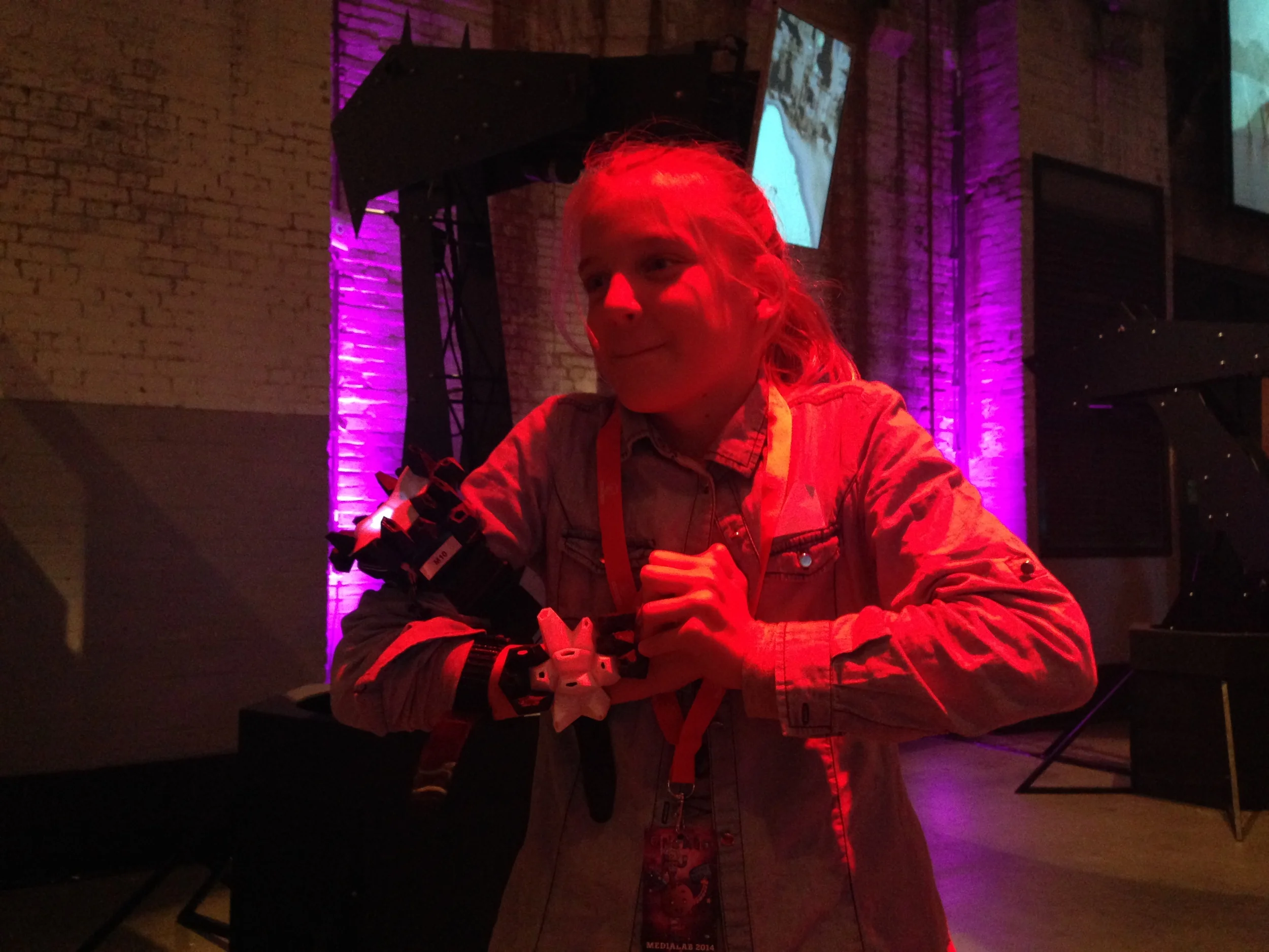 SuperFeel was one of the eighteen wearables shown on the Javits Center in NYC for Make: Wearables Projects on the Runway at Engadget Expand, past Friday Nov 7th.