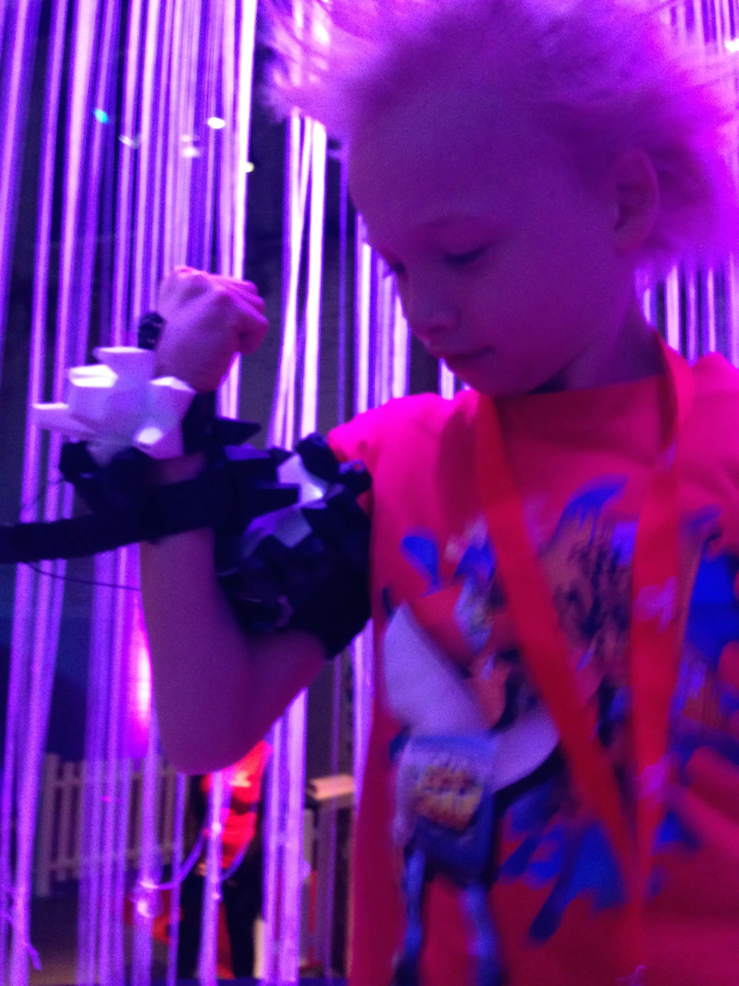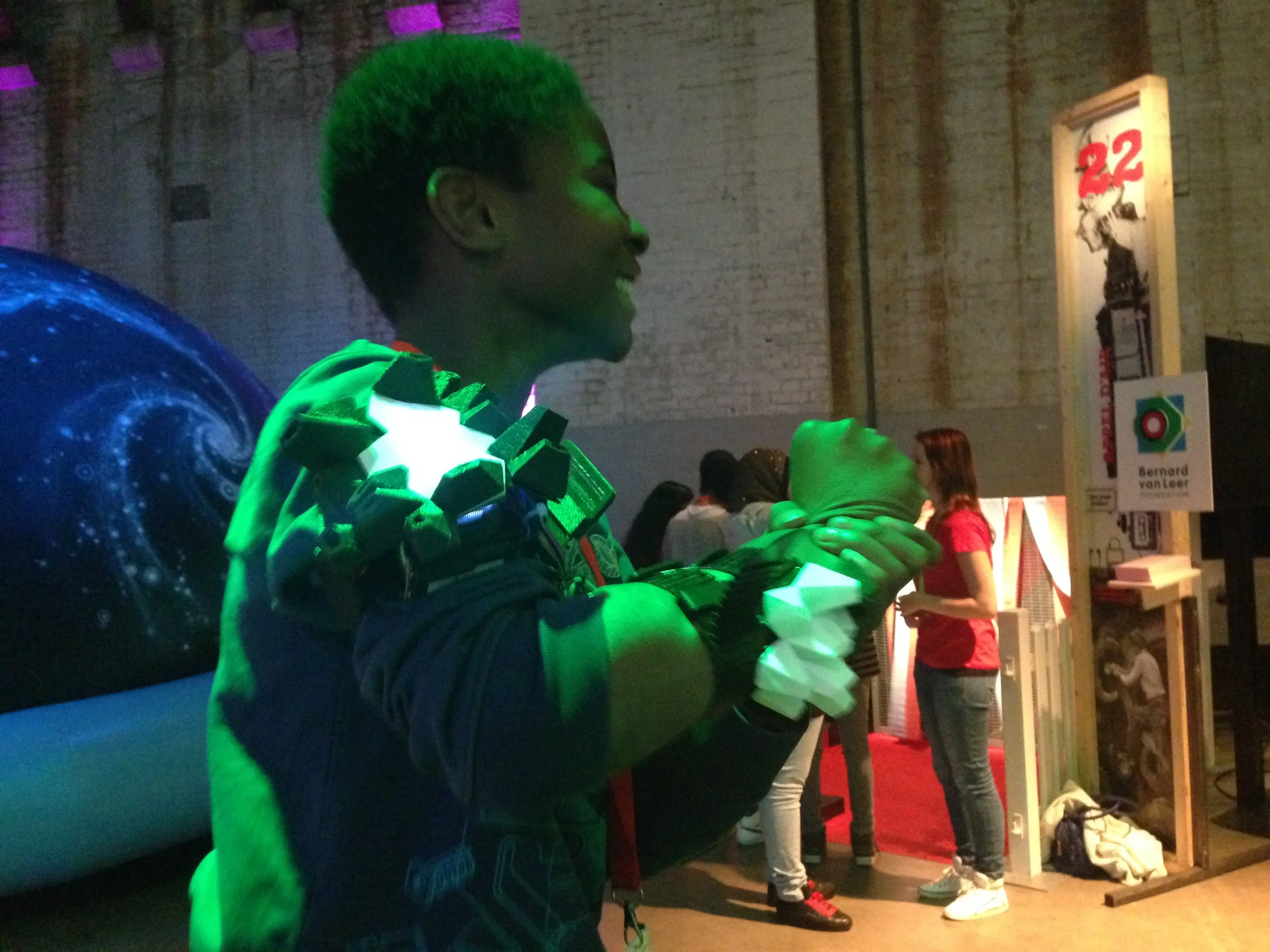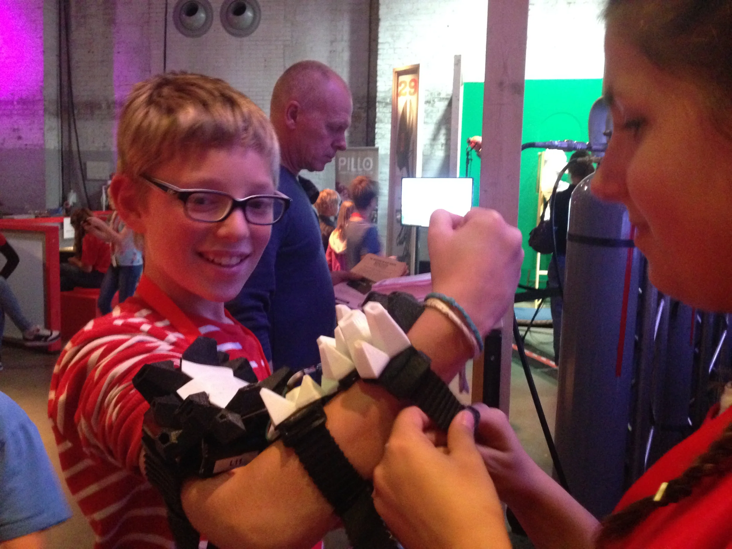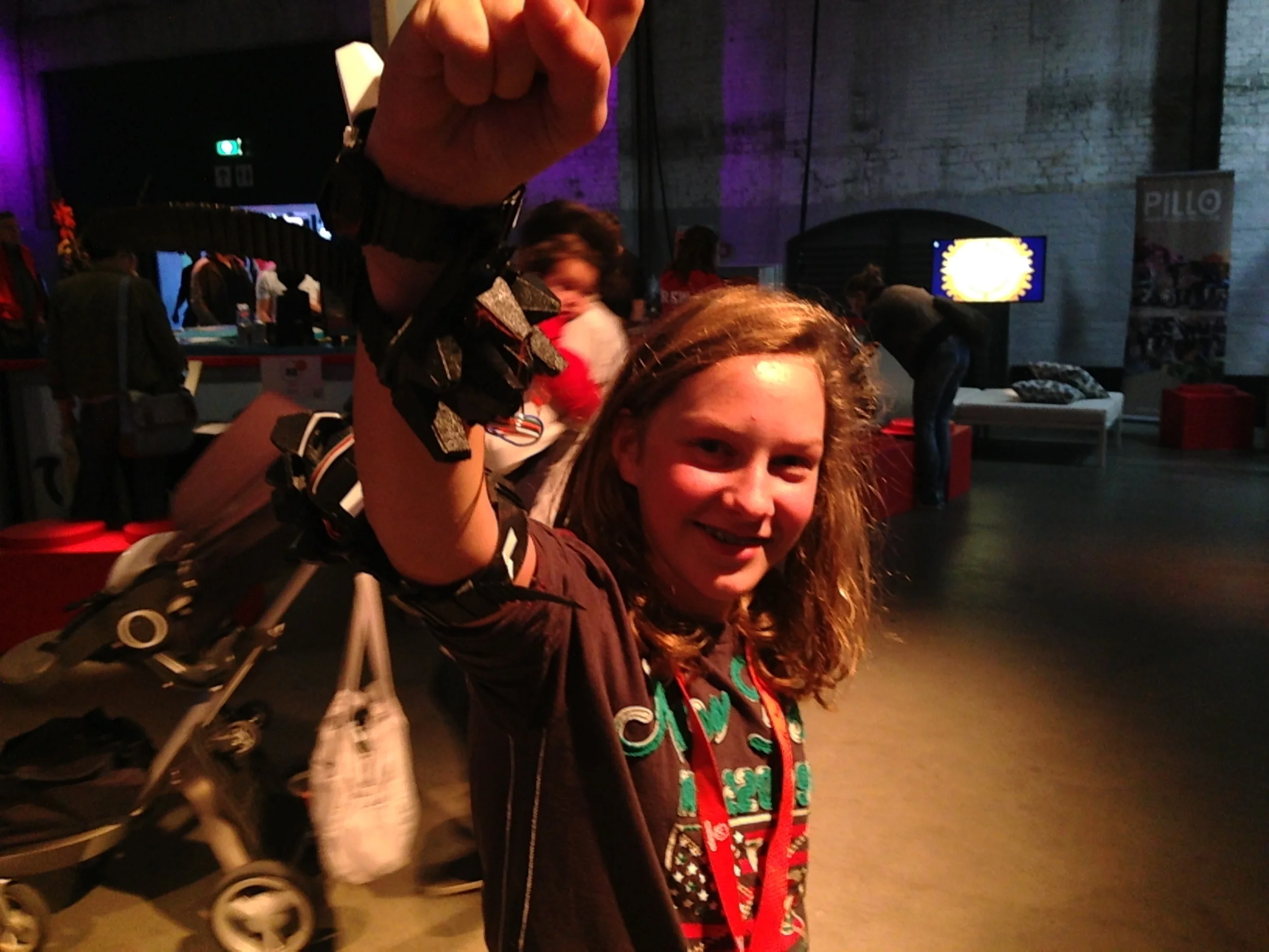 SuperFeel was one of the eighteen wearables shown on the Javits Center in NYC for Make: Wearables Projects on the Runway at Engadget Expand, past Friday Nov 7th.